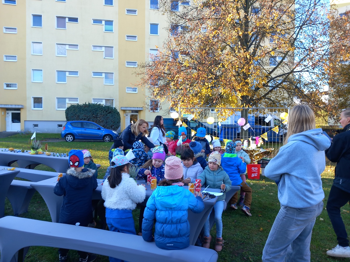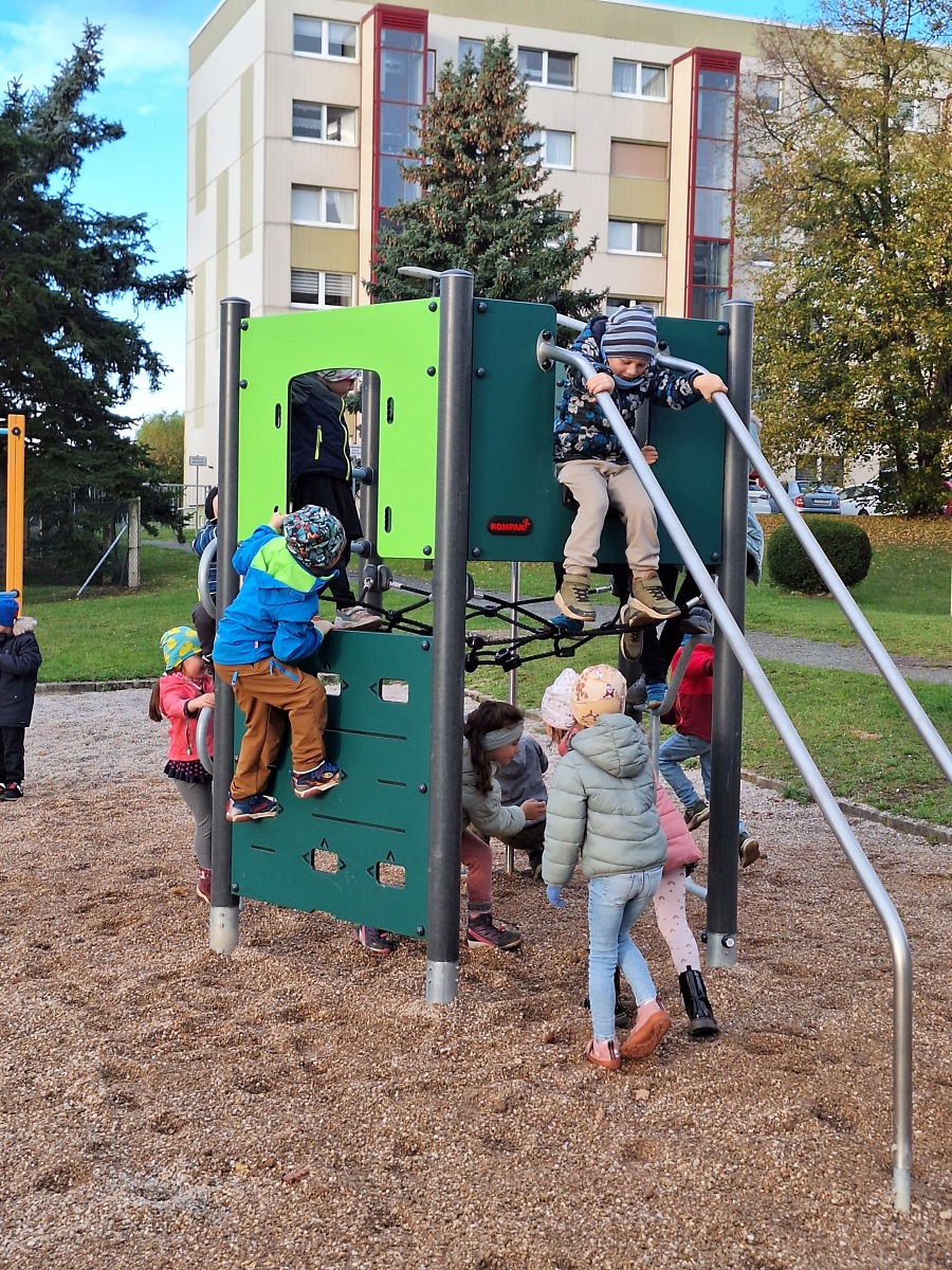 Am 21.10.2025 haben wir zusammen mit Kindern von Kindertagesstätte Kindernest und Geschäftspartnern unsere neuen Spielplatzgeräte eingeweiht.